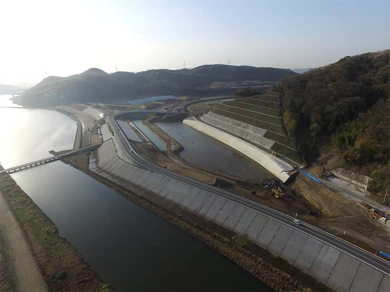 小田川と高梁川との合流点を下流に付け替えるための南山掘削工事及び柳井原貯水池内の河道整正・岩砕盛土を行う工事